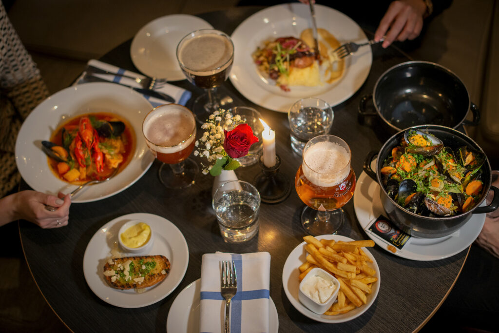 I nära samarbete med restaurang Belgobaren, som ligger i anslutning till Freys Hotel, serveras våra gäster en härlig hotellfrukost. Här kan du senare njuta av en god lunch och till kvällen erbjuds en välkomponerad meny. Som hotellgäst kan du boka en särskild hotellmeny till extra förmånligt pris.